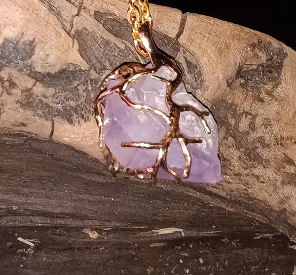 Bathed in the soft glow of twilight, this pendant carries the hush of evening skies and the strength of stories untold. A radiant purple Amethyst stone,wrapped in a delicate golden vine, rests like a secret waiting to be worn. Its shimmer evokes the moment just before dreams take flight—when the world is quiet, and magic stirs.