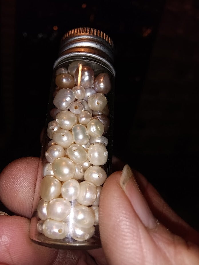 These aere fresh water potato pearls we have very lite cream almost whithe to a heavy cream color.The same in the pink a pastel pink to a hot pink.